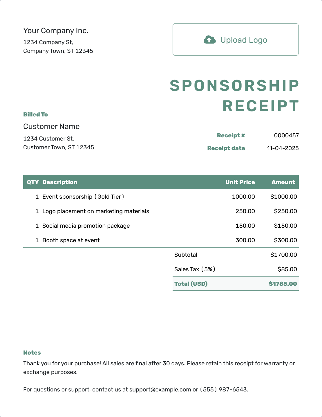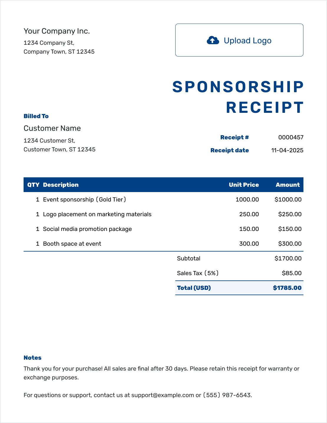 A clean, professional receipt shows your sponsors that you value their support — and their trust.
